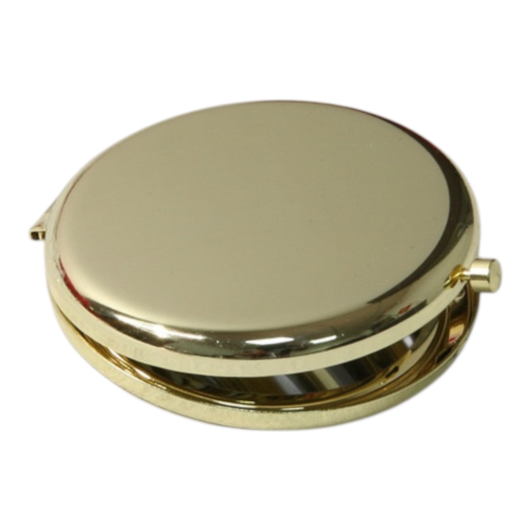 Eleganter Taschenspiegel aus Metall mit glatter, glänzender Oberfläche. Ideal für unterwegs – passt in jede Handtasche und ist perfekt für schnelle Beauty-Checks zwischendurch.