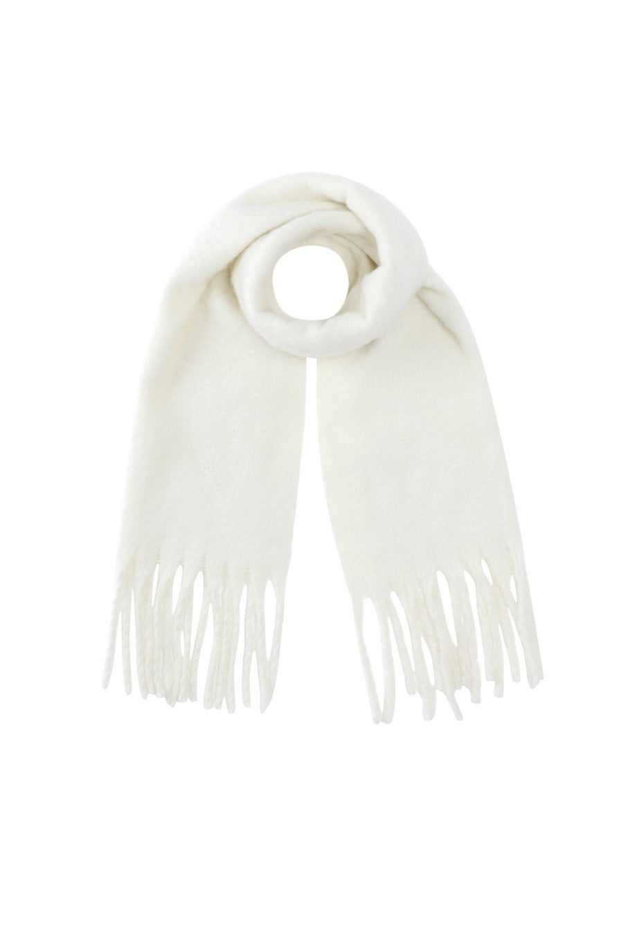 Ein klassischer Schal, der in keinem Kleiderschrank fehlen darf! Der einfarbige Fransenschal in zartem weiß ist der ideale Begleiter für kühle Tage. Er überzeugt durch sein angenehm weiches Material, dezentes Design und lässt sich vielseitig kombinieren – ob zu Mantel, Strick oder Jacke.