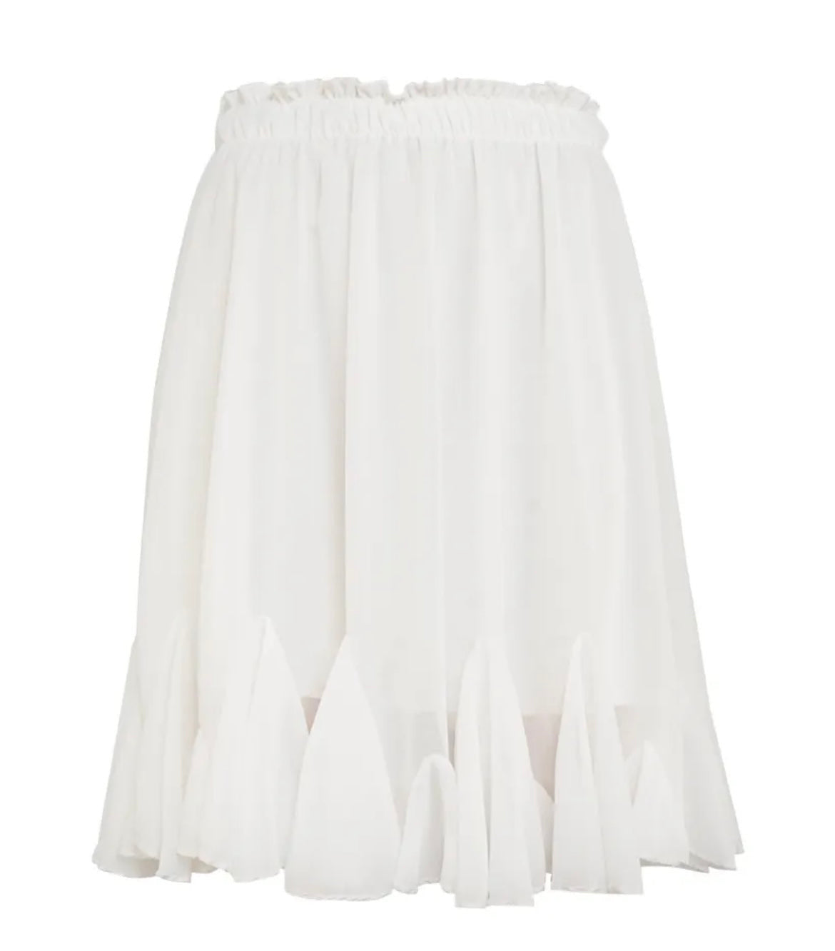 Ein leichter und eleganter Rock aus feinem Chiffon mit romantischen Volants. Der elastische Bund sorgt für eine bequeme Passform und hohen Tragekomfort. Vielseitig kombinierbar – ob für den Alltag, das Büro oder besondere Anlässe.
