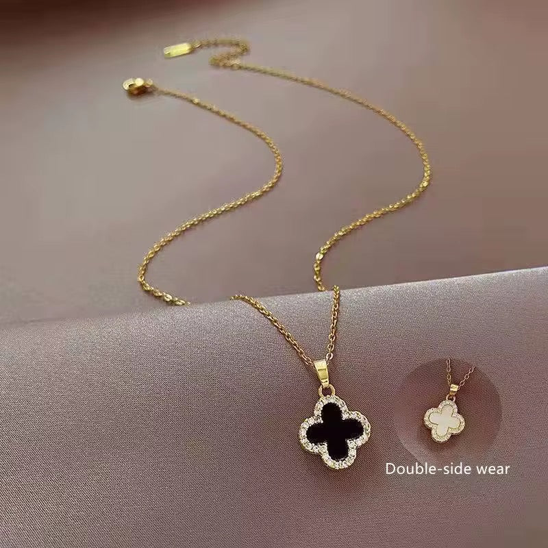 Doppelseitige Halskette – Kleeblatt Anhänger mit Zirkon