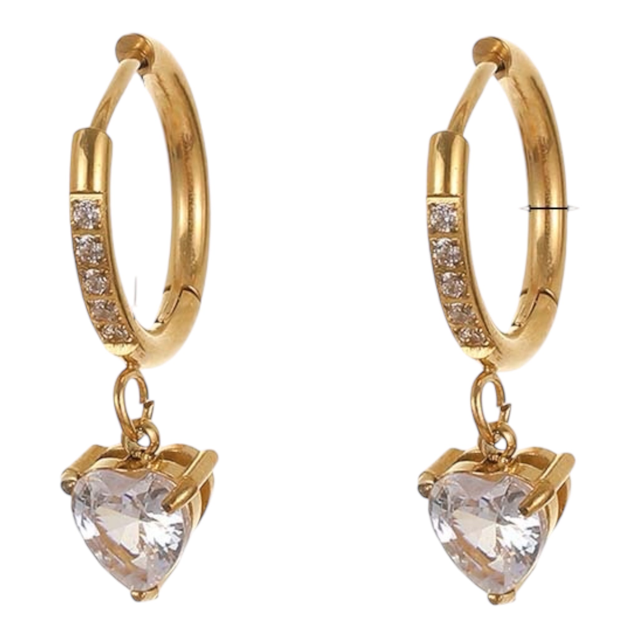 Creolen Ohrringe Gold mit Herz- Anhänger | Gold