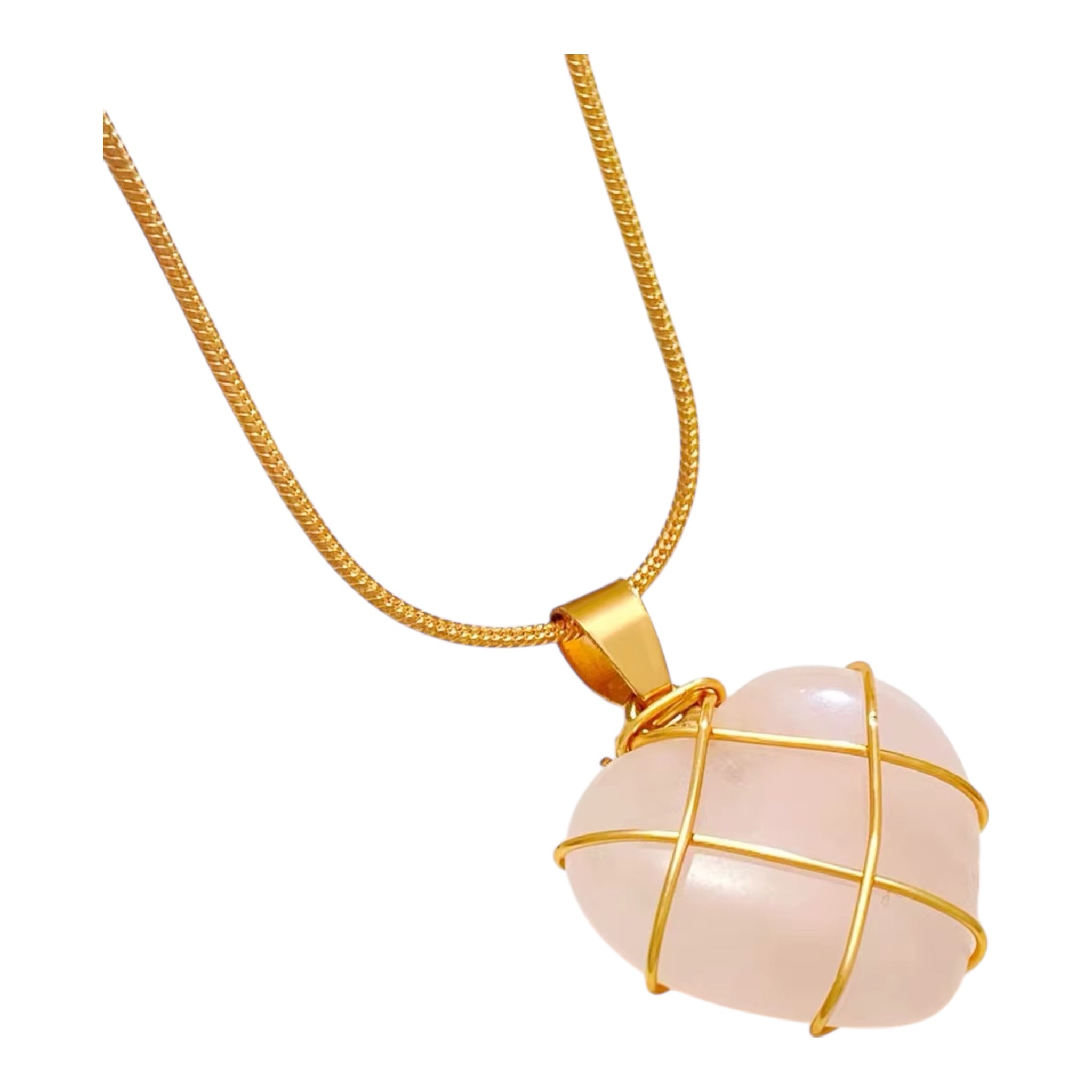 Der glänzende Edelstein-Anhänger in Herzform ist mit feinen goldfarbenen Linien umwickelt und sorgt für einen luxuriösen Look – perfekt für den Alltag oder besondere Anlässe.