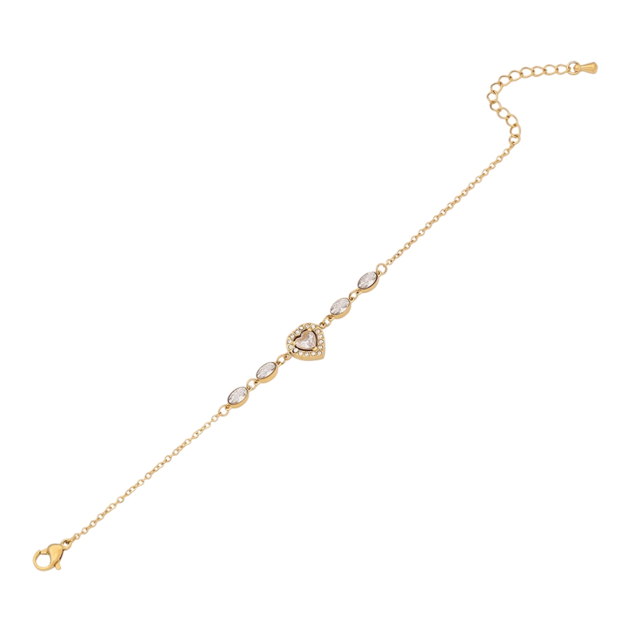 Dieses zarte wasserfeste Herzarmband aus vergoldetem Edelstahl ist ein eleganter Begleiter für jeden Tag. Der funkelnde Kristall im Herzdesign verleiht dem Armband eine feminine, romantische Note. Dank der verstellbaren Länge passt es sich perfekt jedem Handgelenk an – ideal als Geschenk oder für dich selbst.